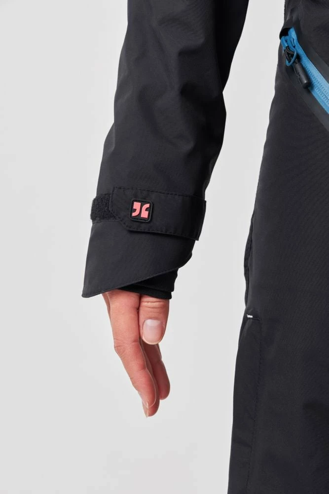 Die ladie’s cut Version kommt in schwarz, dezent damenhafte Reißverschlüsse in mint und türkis und pinke Akzente bringen Farbe ins Spiel.